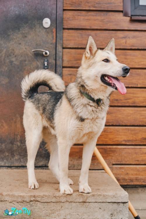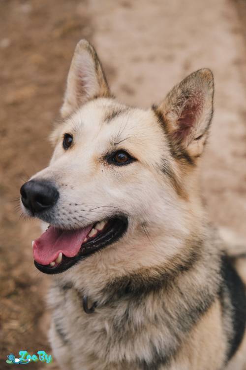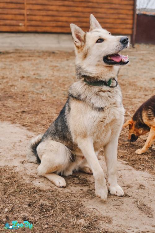 Вероятно, метис лайки. Около 3,5 лет. Здоров, обработан, вакцинирован. Мощный и активный. Показывает хорошие способности к изучению команд. Терпит двухразовый выгул.