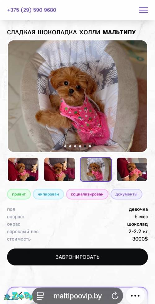 Мальтипу ф1 мини ! Без ошибок и сожалений!Для души! Супер красавицы и красавчики, маленький размер (взрослый вес не превысит 1800-2000гр)! Есть и стандарт. От мелких родителей мама мини мальтезе корея, папа микро той пудель китай. Без пороков и недостатков, короткие бейби мордочки,Компактные,Хорошо одеты! Спешите! Очень качественные щенки! Полный пакет документов! Прививки! Звоните. Возможна Доставка!Фото мои- не копировать!На фото девочка и мальчик, АКТУАЛЬНО!СТОИМОСТЬ1500-3000$