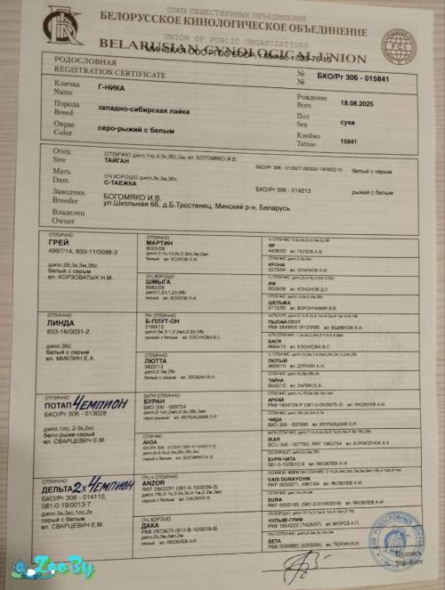 Продается щенок западно-сибирской лайки, сучёнка 18.08.25г р(2,5м), от отлично работающих, дипломированных родителей, одиночные дипломы(1л,3-и.м, к, бс,зверовое направления,с родосл. Щенок осмотрен и сделаны прививки. Местонахождение Минский район- Минск